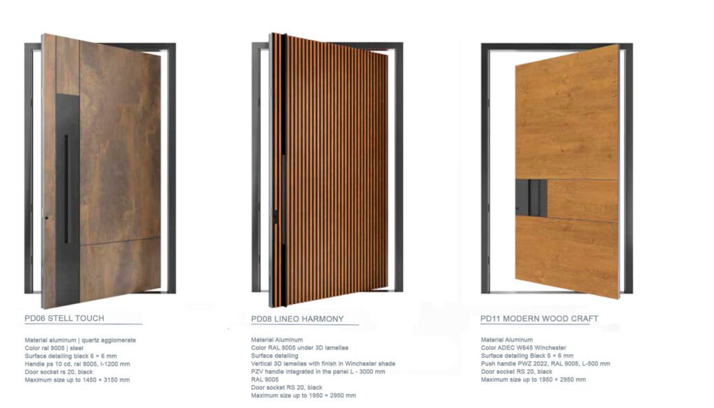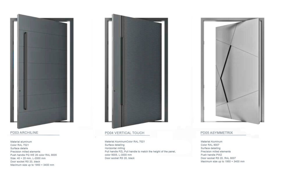 The MB-86N PIVOT DOOR system is a state-of-the-art exterior door solution that provides a high degree of comfort and security. It is designed for installation in residential and commercial buildings as well as public spaces. This system is characterized by an offset axis of rotation, which allows for a unique opening effect and aesthetics.