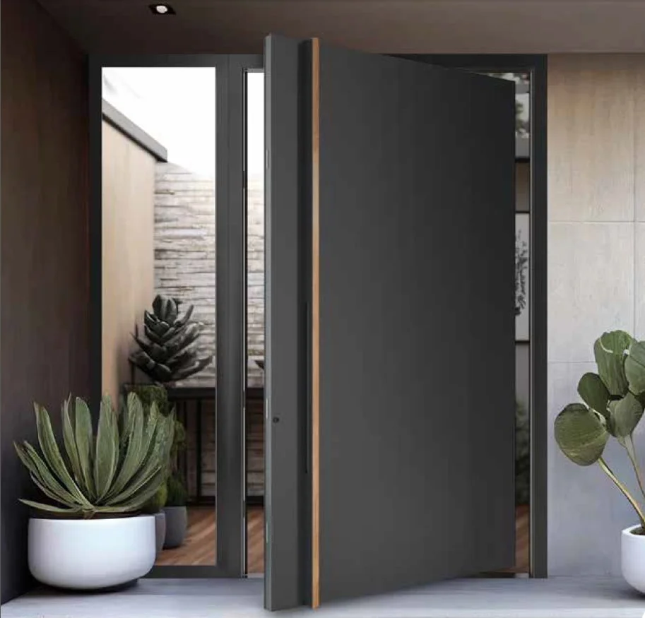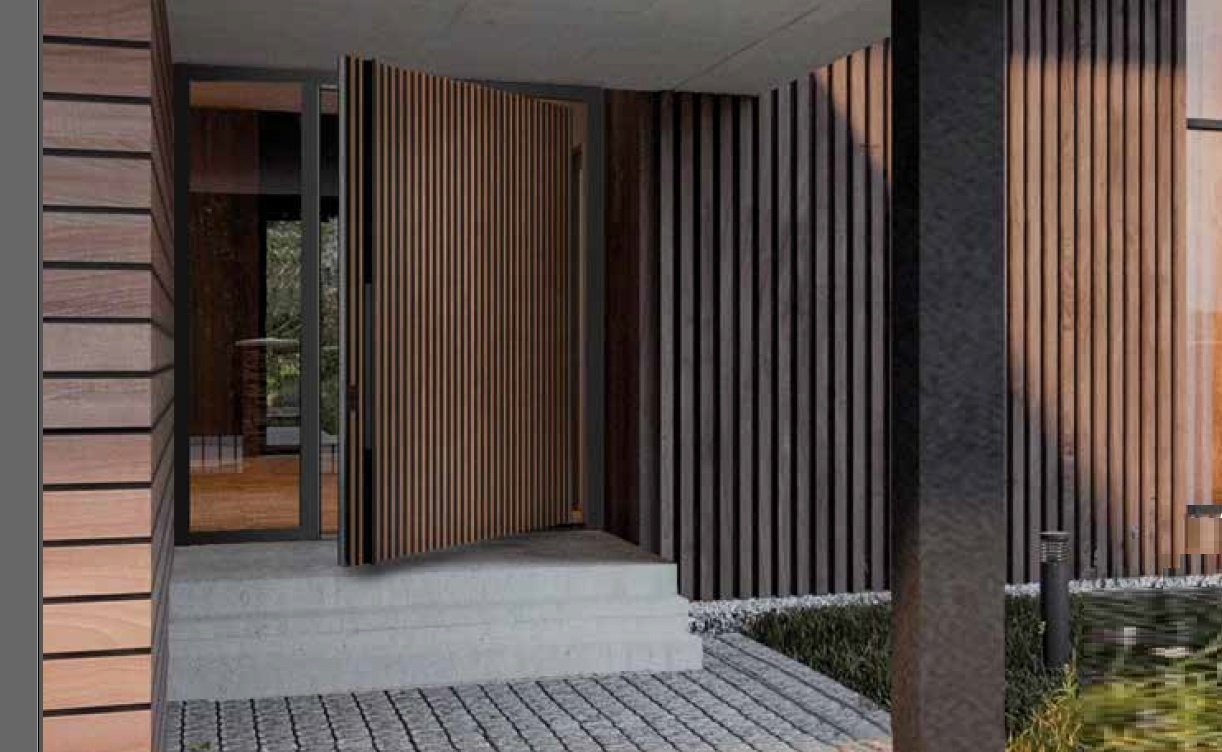 Doors with an offset opening axis are a modern solution that harmonizes with all architectural styles.